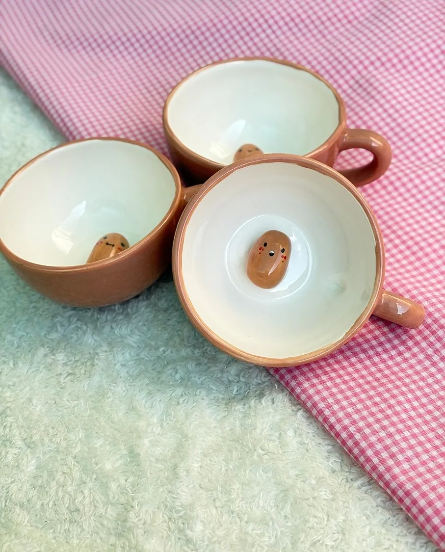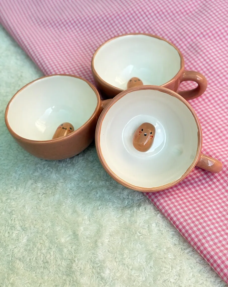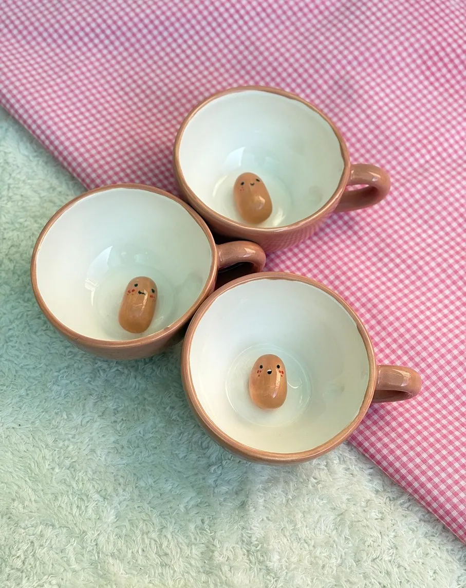 ماگ سوپرایزی سیب‌زمینی یک ماگ فانتزی و خاص با طراحی دست‌ساز است که عروسک بامزه‌ی سیب‌زمینی آن، حس شادی و متفاوت‌بودن را به لحظات نوشیدن شما اضافه می‌کند.